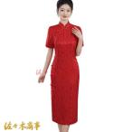 チャイナドレス チャイナ服 チャイナドレス ワンピース 膝丈 ひざたけ マキシドレス マキシ レース 刺繍 花柄 パーティードレス 半袖 チャイナ風ワンピース