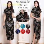 チャイナドレス ワンピース レディース ロング 半袖 チャイナ服 シルク ドレス 結婚式 パーティー コスプレ衣装 チーパオ 大きいサイズ お洒落 上品