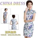 チャイナドレス ミニ レース 選べる3カラー 4サイズ チャイナ服 チャイナワンピース コスプレ 大きいサイズ 半袖 レディース 花柄 エレガント 上