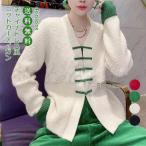 ニットカーディガン レディース チャイナドレス風 長袖 無地 バイカラー 羽織り 前開き 春秋 冬 カジュアル トップス アウター コーデ きれいめ