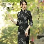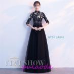 チャイナドレス風ワンピース レディース 七分袖 ロング丈 膝丈 刺繍 パーティードレス エレガント 結婚式 二次会 春夏 きれいめ おしゃれ