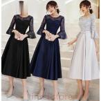 ドレス 結婚式 パーティードレス チャイナ風ミモレ丈&袖ありお呼ばれフォーマルオケージョンドレス 二次会 成人式 同窓会 謝恩会 20代 30代
