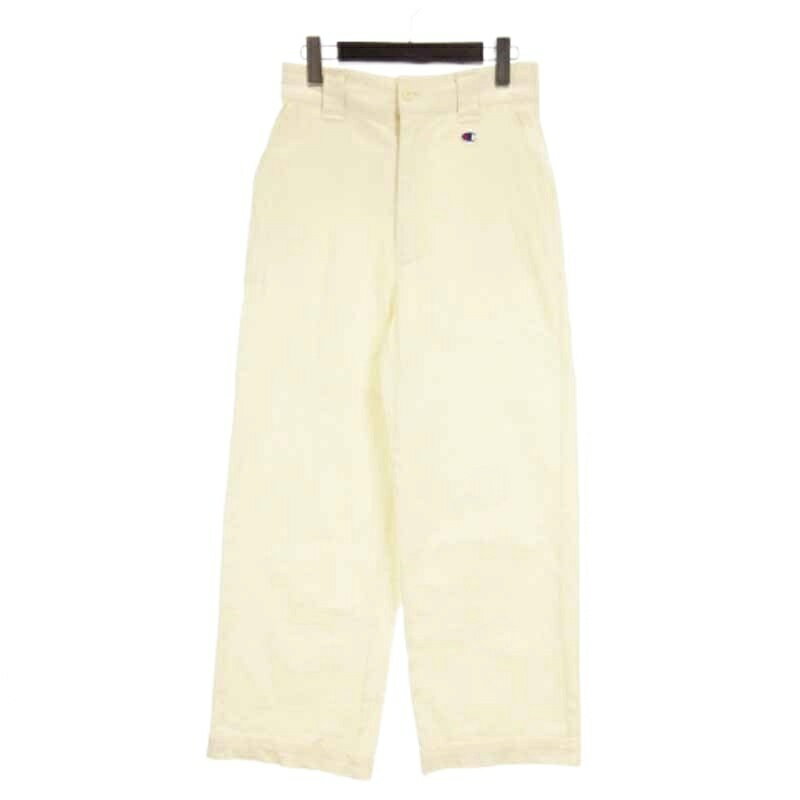 【中古】チャンピオン CHAMPION ロング パンツ チノパン ストレート ワイド ロゴ刺繍 ストレッチ コットン CW-Z206 アイボリー M レディース 【ベクトル 古着】 250912