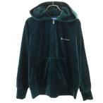 Champion チャンピオン 長袖 ベロア ジップパーカー M 深緑 レディース 古着 中古