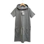チャンピオン CHAMPION タグ付き 半袖スウェットパーカーワンピース ドット柄 グレー ホワイト サイズL レディース