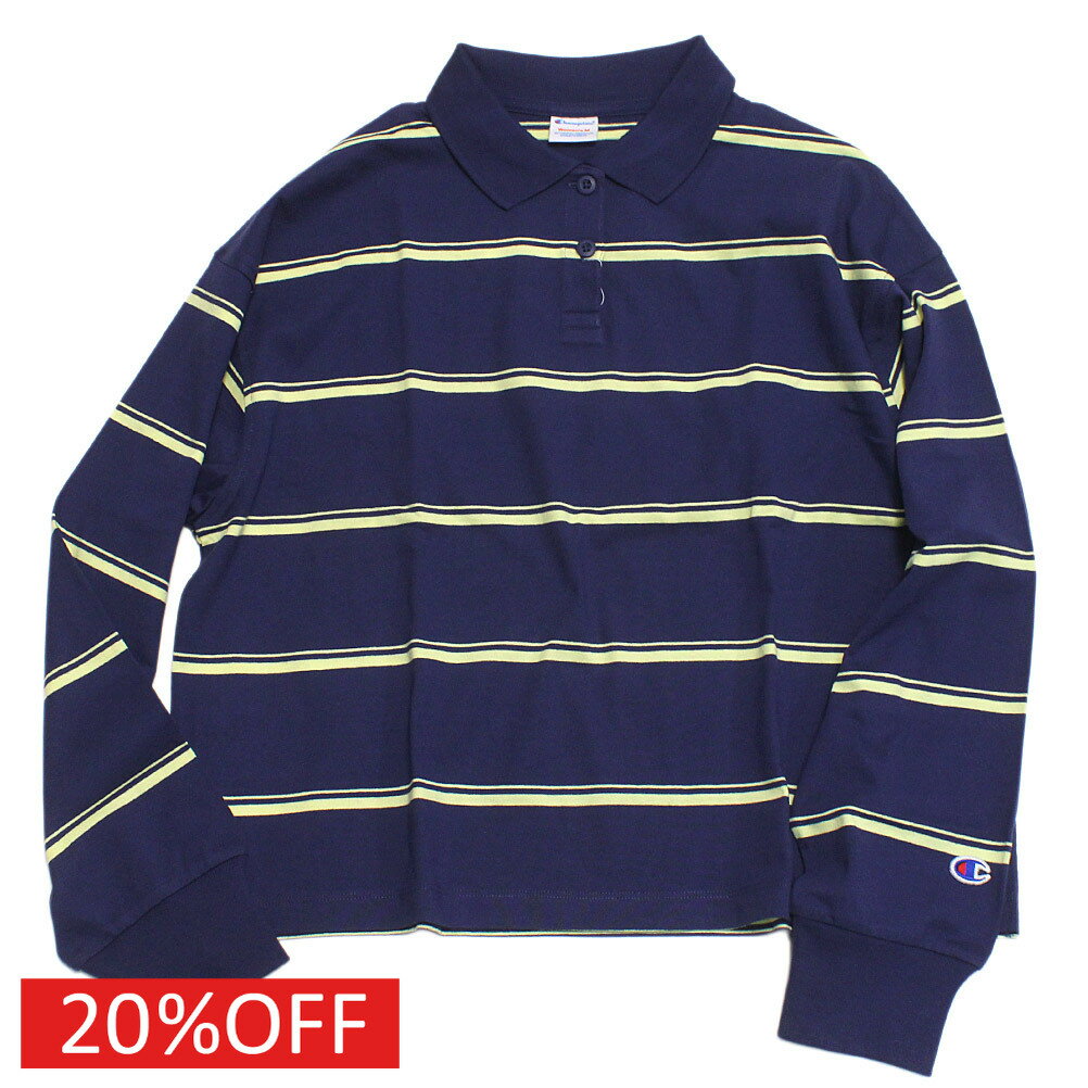 セール 「20%OFF」 長袖Tシャツ \"チャンピオン\" WOMENS/LONG SLEEVE ボーダーポロシャツ カーボンブルー(395)