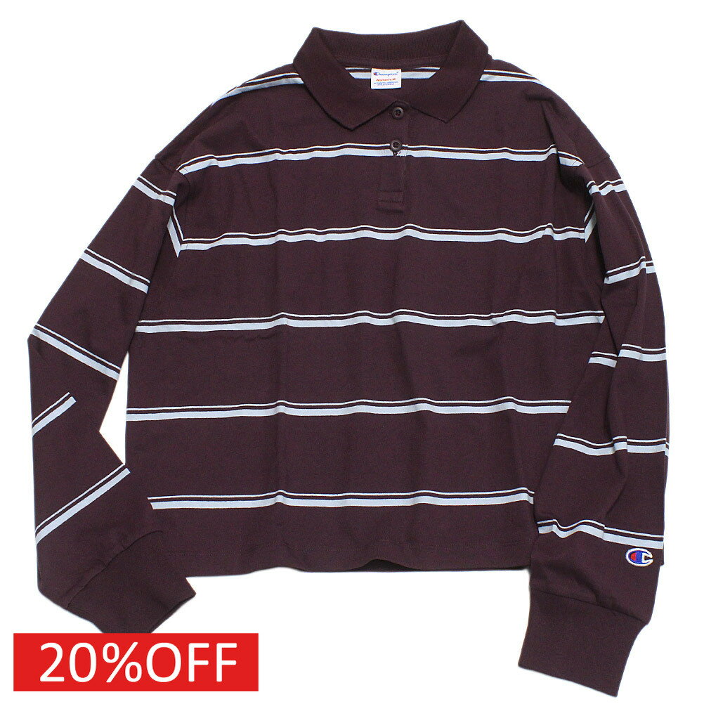 セール 「20%OFF」 長袖Tシャツ \"チャンピオン\" WOMENS/LONG SLEEVE ボーダーポロシャツ バーガンディ(109)