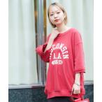 「FREAK'S STORE」 Tシャツワンピース「championコラボ」 フリ- レッド レディース
