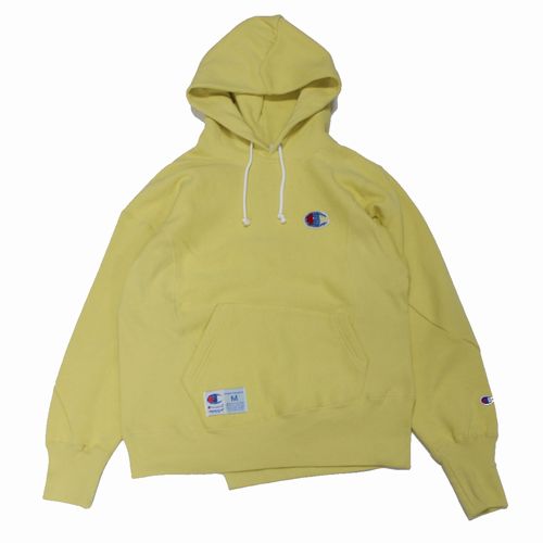 【中古】 UNDERCOVER × Champion アンダーカバー 25AW 11.5oz CP裏毛ビーズ刺繍アシンメトリー切替HOODIE パーカー M イエロー