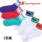 チャンピオン 靴下 レディース CWSCA202 3足組 クォーターレングスソックス ハーフパイル socks くつ下 ウィメンズ くつした ワンポイント ロゴ プリント ライン