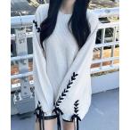 ニット セーター ふんわり裾ラウンドゆるニットチュニック レディース