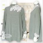 【日本製】HEAT素材で温か♪レディース ファッション トップス チュニック 黒 長袖 秋 大人可愛い 40代 レディースファッション 50代女性 ファッション 60代 インターアクション ハイネック 芦屋【アミティエ】お花&レースハイネックニットチュニック