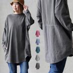 チュニック 長袖 レディース クルーネック 綿100 コットン ミニ裏毛 ピグメント 褪せ色 ポケット ゆったり 大きいサイズ 着痩せ 細見え パティ