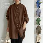ロングシャツ 長袖 チュニック トップス シャツ レディース 大きいサイズ ドルマン袖 前開き ボタン留め シンプル コーデ 秋物 30代 40代 50代 60代