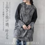 チュニック 長袖 上品さと抜け感どちらも叶えるチュニック トップス グレー 春 秋 冬 秋冬 厚手 ベロア 花柄 エレガント OTONA 40代 50代 60代