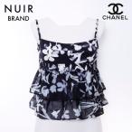 シャネル CHANEL キャミソール チュニック 花柄 04S 42 ノースリーブ タンクトップ ブラックxホワイト