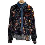 良品 DIESEL ディーゼル フラワープリント ロングスリーブ デニムドッキング シャツ ブラウス XS ブラック レディース 古着 中古
