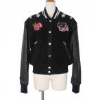 ディーゼル DIESEL ラムレザーブルゾン ボアジャケット リブ袖 フラワーパッチ 切替 M 黒 ブラック 国内正規品 レディース