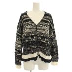 ディーゼル DIESEL ニット ジャケット ジップアップ 上着 XS 黒 白 長袖 総柄 裾フリル /JP レディース