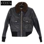 DIESEL ディーゼル L-TRACY シープファー ウ゛ィンテージ加工 レザーブルゾン ジャケット XS ブラック×ブラウン レディース 【中古】
