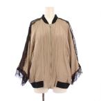 ディーゼル DIESEL ジャケット ブルゾン アウター ショート丈 ジップアップ レース 装飾 バイカラー XL グレージュ 黒 ブラック /BB