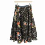 ディーゼル DIESEL サテン フレアスカート 花柄 ロング スカート S 黒 ブラック /☆G レディース
