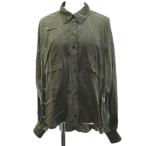 ディーゼル DIESEL 長袖 シャツ ブラウス M 緑系 カーキ 切替 ボタンダウン リング リブ レディース