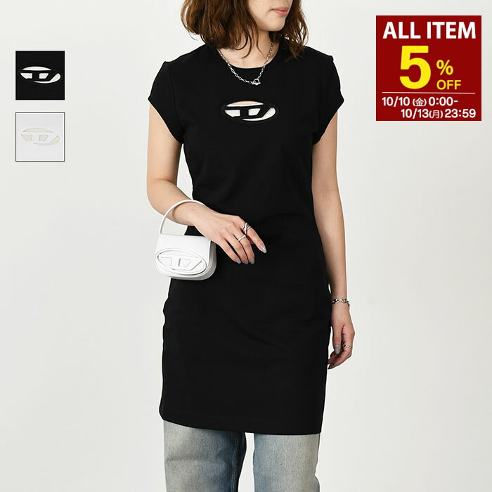 【5%OFFクーポン】DIESEL ディーゼル ワンピース トップス D-ANGIEL コットンジャージーミニドレス A06270 0AFAA レディース ホワイト ブラック ロゴ スリムフィット ミニワンピ_d sstmcp