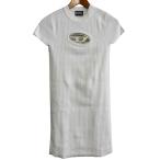 美品 DIESEL ディーゼル 半袖 フロントカットワーク クルーネック ひざ上丈 リブニットワンピース XS ホワイト レディース 古着 中古