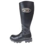 DIESEL ディーゼル DHAMMER ダンマー Dロゴ シルバープレート サイドジップ ロングブーツ レディース ブラック