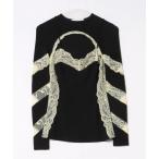 tシャツ DRAPED JERSEY & LACE LS CREWNE レディース
