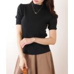 tシャツ ハイネック パフスリーブ 半袖 ニット トップス レディース