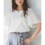 tシャツ シアー袖切替5分袖Tシャツ レディース