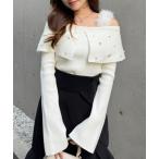 ニット セーター ショルダーフェイクファービジューニットトップス 秋服 冬服 レディース
