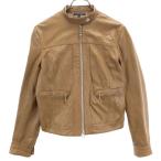 TOMMY HILFIGER トミーヒルフィガー 山羊革 ゴートレザー シングルライダースジャケット S ブラウン レディース 古着 中古