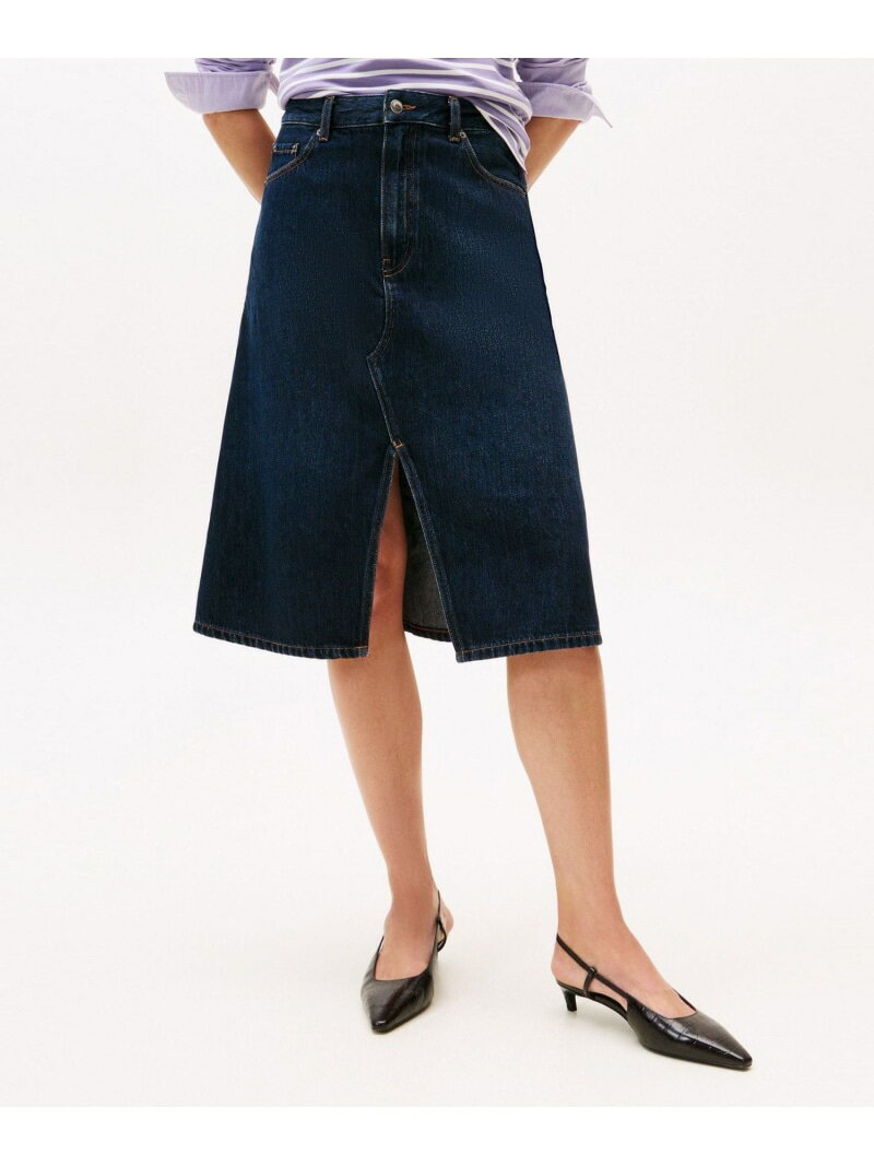 トミー ヒルフィガー TOMMY HILFIGER デニムミディハイウエストスカート (インディゴブルー)