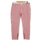 トミーヒルフィガー TOMMY HILFIGER 美品 ギンガムチェックパンツ クロップド テーパード ストレッチ M 赤 白 X レディース