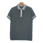 【中古】TOMMY HILFIGER トミーヒルフィガー L レディース ポロシャツ カットソー 鹿の子 ボーダー 半袖 綿100% グリーンブルー×ネイビー 青系