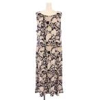トミーヒルフィガー TOMMY HILFIGER ワンピース ミモレ ロング ノースリーブ クルーネック ストレッチ 総柄 14 紺 ネイビー ベージュ