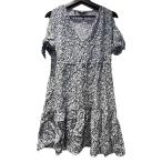 トミーヒルフィガー TOMMY HILFIGER ワンピース ひざ丈 半袖 切替 レザー 白 ホワイト 2 約M レディース