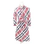 トミーヒルフィガー シャツワンピース ひざ丈 長袖 バンドカラー フリル ウエストマーク リボン コットン チェック 総柄 XS 赤 レッド