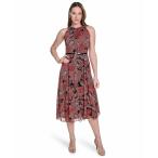 トミー ヒルフィガー ワンピース トップス レディース Women's Keyhole Printed Midi Dress Aubergine