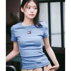 【SALE/50%OFF】スリムバッジリブTシャツ TOMMY JEANS トミーヒルフィガー トップス カットソー・Tシャツ ホワイト ブラック ブルー ネイビー ピンク パープル【RBA_E】[Rakuten Fashion]
