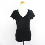トミーヒルフィガー TOMMY HILFIGER Tシャツ カットソー 半袖 Vネック ロゴ コットン S ブラック ※EKM レディース