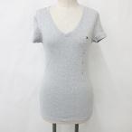 未使用品 トミーヒルフィガー TOMMY HILFIGER カットソー Tシャツ 半袖 Vネック 刺繍 綿 グレー S レディース