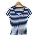 トミーヒルフィガー TOMMY HILFIGER Tシャツ カットソー 半袖 Vネック ボーダー柄 ロゴ M 青 ブルー 白 ホワイト /SY41 レディース