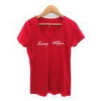 トミーヒルフィガー TOMMY HILFIGER Tシャツ カットソー 半袖 Vネック ロゴ S 赤 レッド 白 ホワイト /YK28 レディース