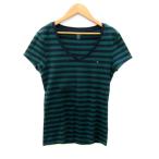 トミーヒルフィガー TOMMY HILFIGER Tシャツ カットソー 半袖 Vネック ボーダー柄 M 緑 グリーン 紺 ネイビー /SY44 レディース