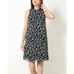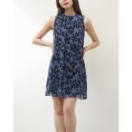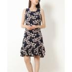 トミー ヒルフィガー TOMMY HILFIGER ☆フラワー柄ジャージ素材ノースリーブAラインチュニックワンピース (ネイビーマルチ)