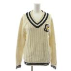 トミーヒルフィガー TOMMY HILFIGER ニット セーター ウール S 白 ホワイト 紺 ネイビー Vネック ケーブル編み 長袖 /RR レディース